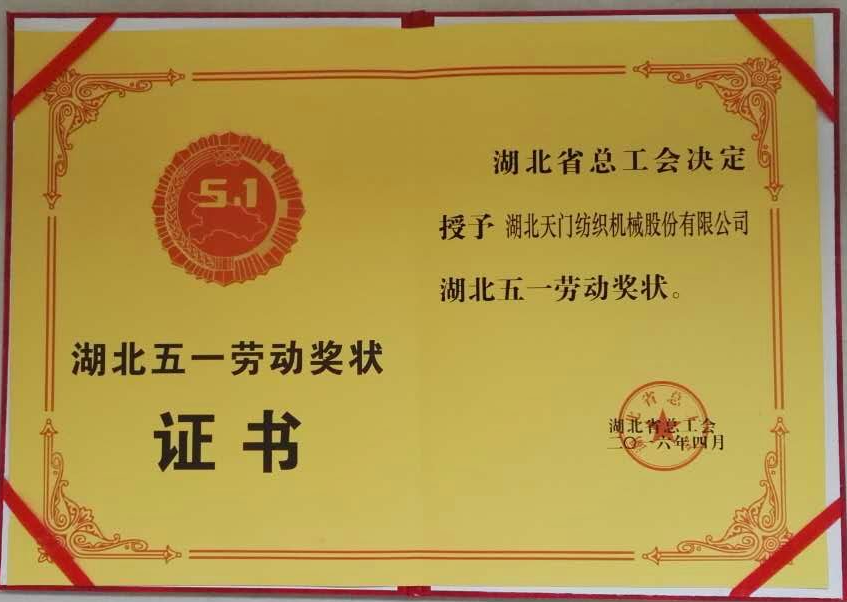 近日,公司傳來(lái)喜訊。4月28日在武漢東湖賓館召開的湖北省慶祝五一國(guó)際勞動(dòng)節(jié)暨表彰大會(huì)上,湖北天門紡織機(jī)械股份有限公司被省工會(huì)授予“五一勞動(dòng)獎(jiǎng)狀”,這是天門市本年度唯一上榜單位。