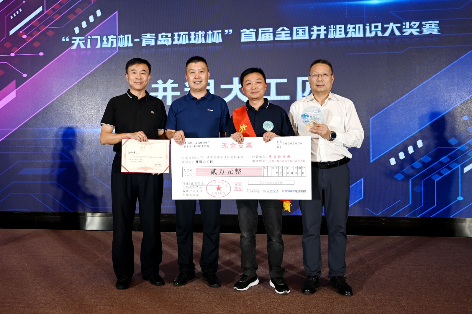 27日下午,大會(huì)隆重舉行了“天門(mén)紡機(jī)-青島環(huán)球杯”首屆全國(guó)并粗知識(shí)大獎(jiǎng)賽現(xiàn)場(chǎng)爭(zhēng)霸賽及頒獎(jiǎng)活動(dòng)。