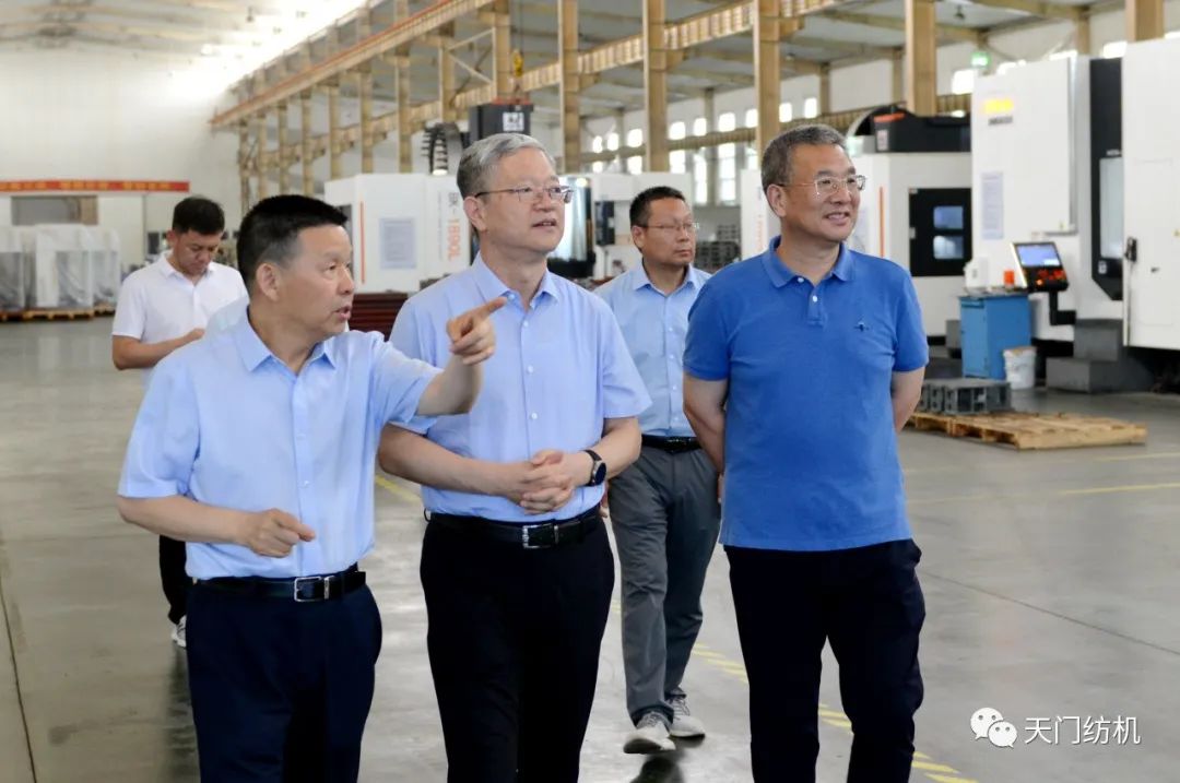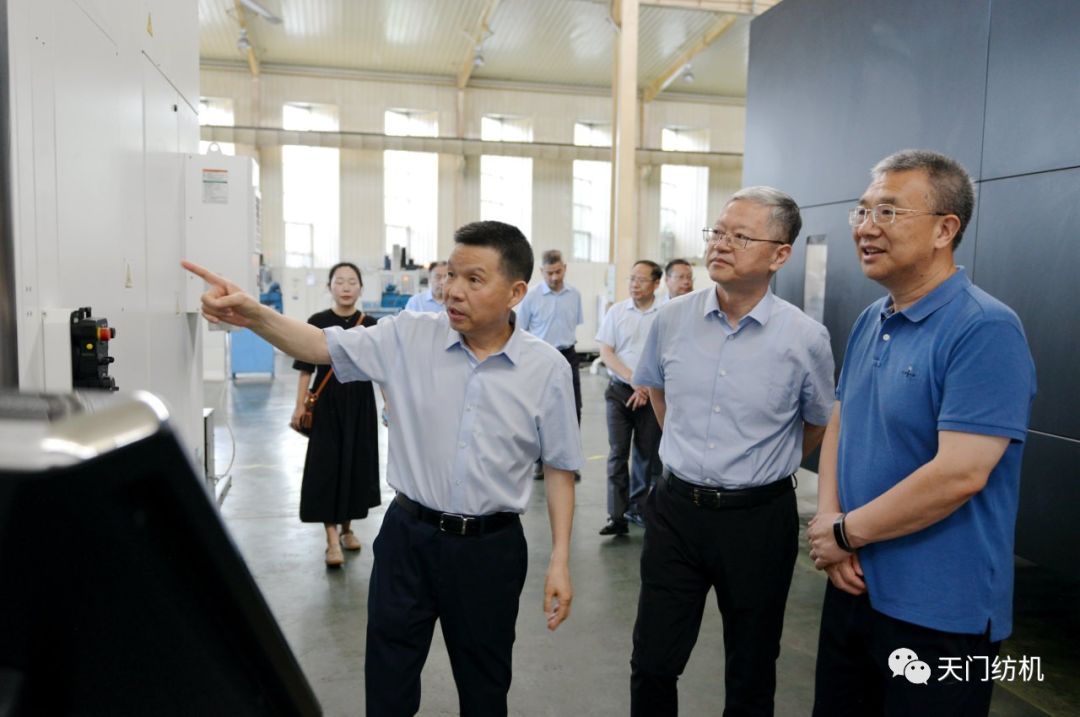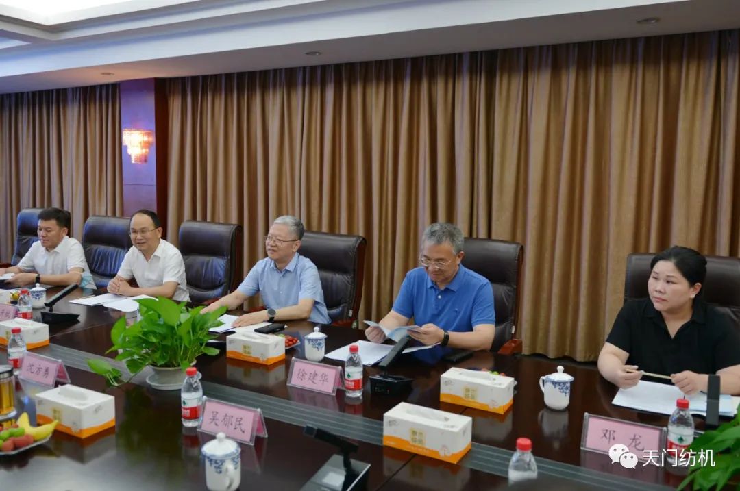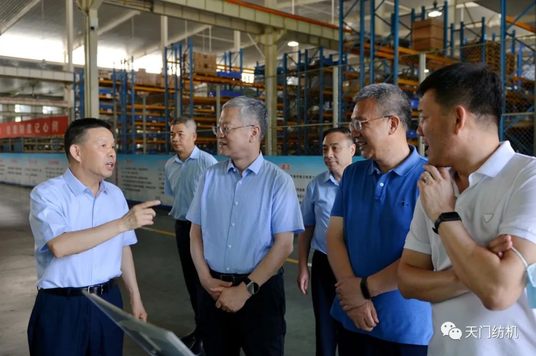2023年6月27日下午,中國(guó)紡織工業(yè)聯(lián)合會(huì)秘書(shū)長(zhǎng)夏令敏,中國(guó)紡織工業(yè)聯(lián)合會(huì)流通分會(huì)副會(huì)長(zhǎng)徐建華、秘書(shū)長(zhǎng)王水元蒞臨天門紡機(jī)調(diào)研,湖北省經(jīng)信廳副廳長(zhǎng)周開(kāi)斌、消費(fèi)品工業(yè)處副處長(zhǎng)鄧龍陪同調(diào)研。