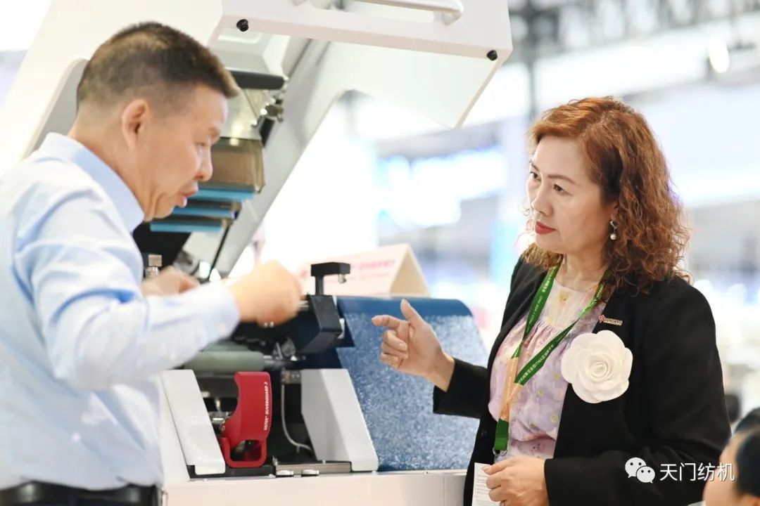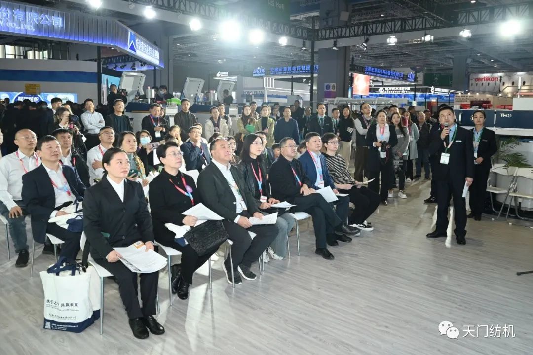 中國(guó)紡織工業(yè)聯(lián)合會(huì)會(huì)長(zhǎng)孫瑞哲,副會(huì)長(zhǎng)夏令敏、徐迎新,老領(lǐng)導(dǎo)張延愷副會(huì)長(zhǎng)和歐洲紡織機(jī)械制造商委員會(huì)主席Mr. Ernesto Maurer等嘉賓共同揭幕,天門紡機(jī)T2、T3系列新產(chǎn)品正式亮相。