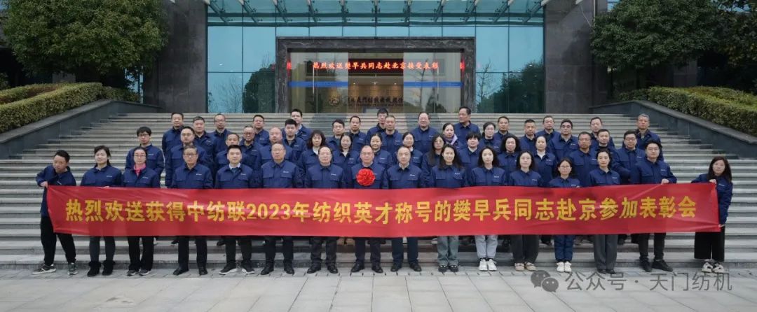 2024年1月15日上午,天門紡機部室員工齊聚科技樓大廳,歡送公司品控總監(jiān)、高級檢驗師樊早兵同志赴京參加“2023年中國紡織人才大會”。公司總經(jīng)理焦倫進在歡送活動中即席講話,他說,樊早兵同志被授予“2023年度新時代紡織英才”,是中紡聯(lián)對他取得的顯著成績及奉獻精神的充分肯定,實至名歸。他得到如此殊榮是天門紡機的驕傲,全體員工要以他為榜樣,努力工作,奮發(fā)有為,為公司高質量發(fā)展貢獻應有的力量。送行的員工敲鑼打鼓,載歌載舞,把現(xiàn)場氣氛推向高潮。