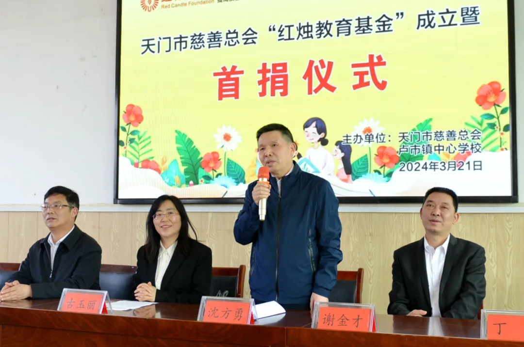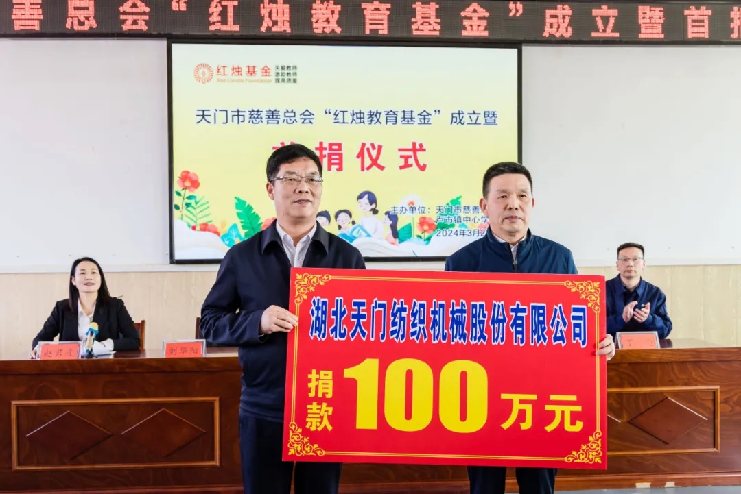 2024年3月21日,天門紡機董事長沈方勇出席在天門市盧市鎮(zhèn)盧家口中學(xué)舉行的天門慈善總會“紅燭教育基金”成立暨首捐儀式,同天門市慈善總會、教育局三方簽訂了《天門市慈善總會“紅燭教育基金”協(xié)議書》,并現(xiàn)場捐贈100萬元,用于獎勵盧市鎮(zhèn)優(yōu)秀教師和幫扶困難教師等公益活動,助力盧市鎮(zhèn)教育高質(zhì)量發(fā)展。天門市人民政府副市長古玉麗,天門市民政局局長、市慈善總會會長謝金才,天門市教育局局長劉華陽,天門市慈善總會秘書長李貴清,盧市鎮(zhèn)宣傳統(tǒng)戰(zhàn)委員劉恒超以及盧市鎮(zhèn)部分教師代表等參加首捐儀式。盧市鎮(zhèn)黨委書記趙君波主持儀式。