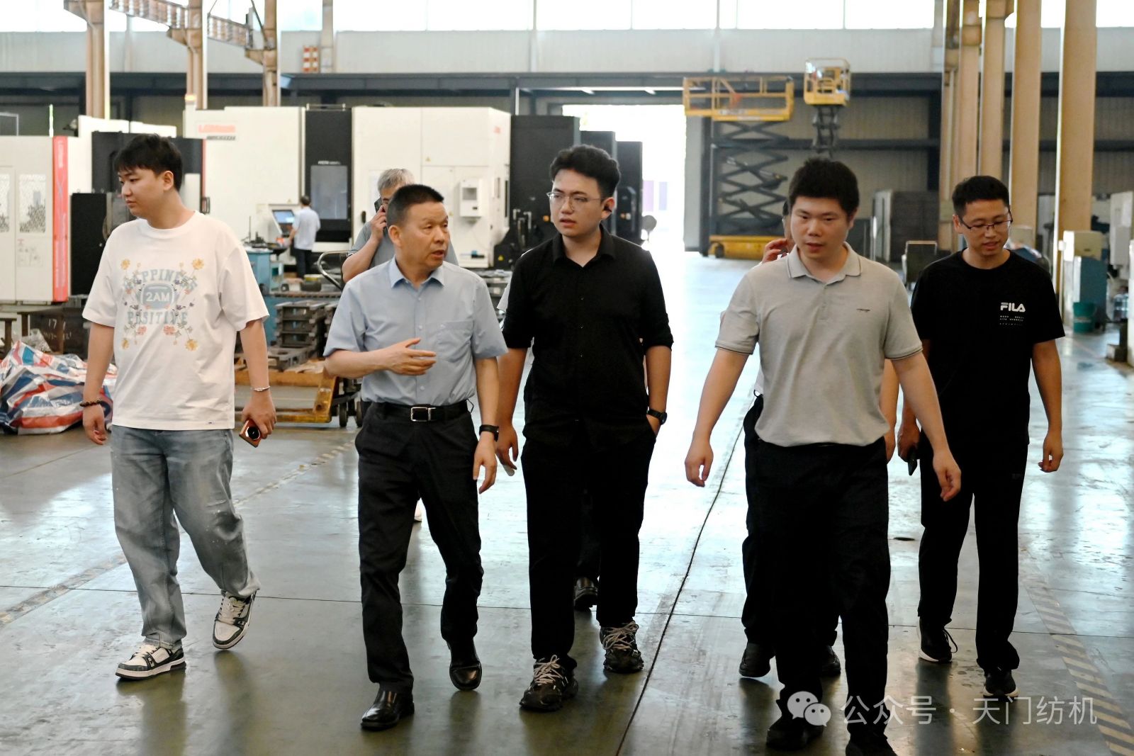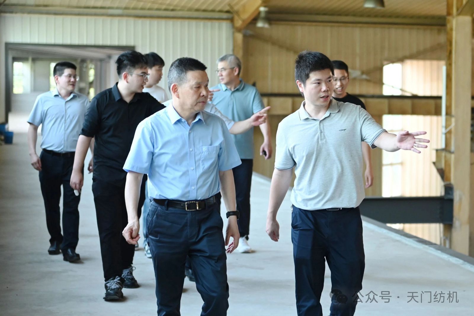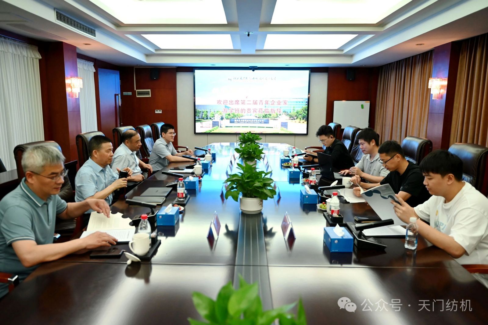 作為本次活動的支持單位,天門紡機盛情邀請了一批行業(yè)領(lǐng)袖和青年翹楚蒞臨公司指導(dǎo)交流。7月9日上午,無錫一棉原董事長周曄珺、中國紗線網(wǎng)副總裁孫其海、鐵門關(guān)星宇信達總經(jīng)理郭超、河南盛泰越南棉紡總經(jīng)理馬強強等貴賓蒞臨公司調(diào)研;當(dāng)日下午,鄆城東盛總經(jīng)理劉顯豐、新疆智亞總經(jīng)理劉顯赫、福建云杉總經(jīng)理許立、廣東洪興實業(yè)股份有限公司營銷總監(jiān)柯楷楠、鄆城晨龍紡織總經(jīng)理何邦超等貴賓到訪公司。公司董事長沈方勇、總經(jīng)理焦倫進全程熱情接待。