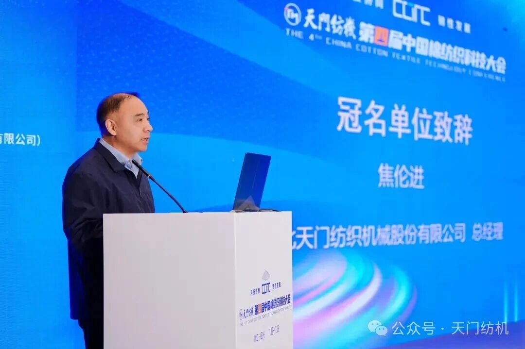 天門紡機總經理焦倫進代表冠名單位致辭。他表示,40余年來,天門紡機秉持“并條做精、企業(yè)做強”初心,深耕并條機領域,以優(yōu)質產品、服務及品牌引領行業(yè)發(fā)展。其雙眼自調勻整并條機已在棉紡企業(yè)廣泛推廣應用,顯著提升了紗線質量與生產效率,成為紡紗企業(yè)必備裝備;“并條工序全自調勻整”理念亦獲得客戶認可,有效改善紗線和布面質量。在技術創(chuàng)新方面,天門紡機成果豐碩,TM1系列并條機已成紡織行業(yè)主力產品,T2系列產品正逐步推向市場,搭載智能在線檢測、一控多軸多臺及數據管理云平臺技術的“產線聯(lián)動”并條機引起了業(yè)界廣泛關注。同時,天門紡機全力推進“智改數轉”,“智慧工廠”項目正在如火如荼地建設之中。他指出,天門紡機始終關注行業(yè)的最新動態(tài)和前沿技術,希望與業(yè)界加強溝通與合作,攜手發(fā)展。