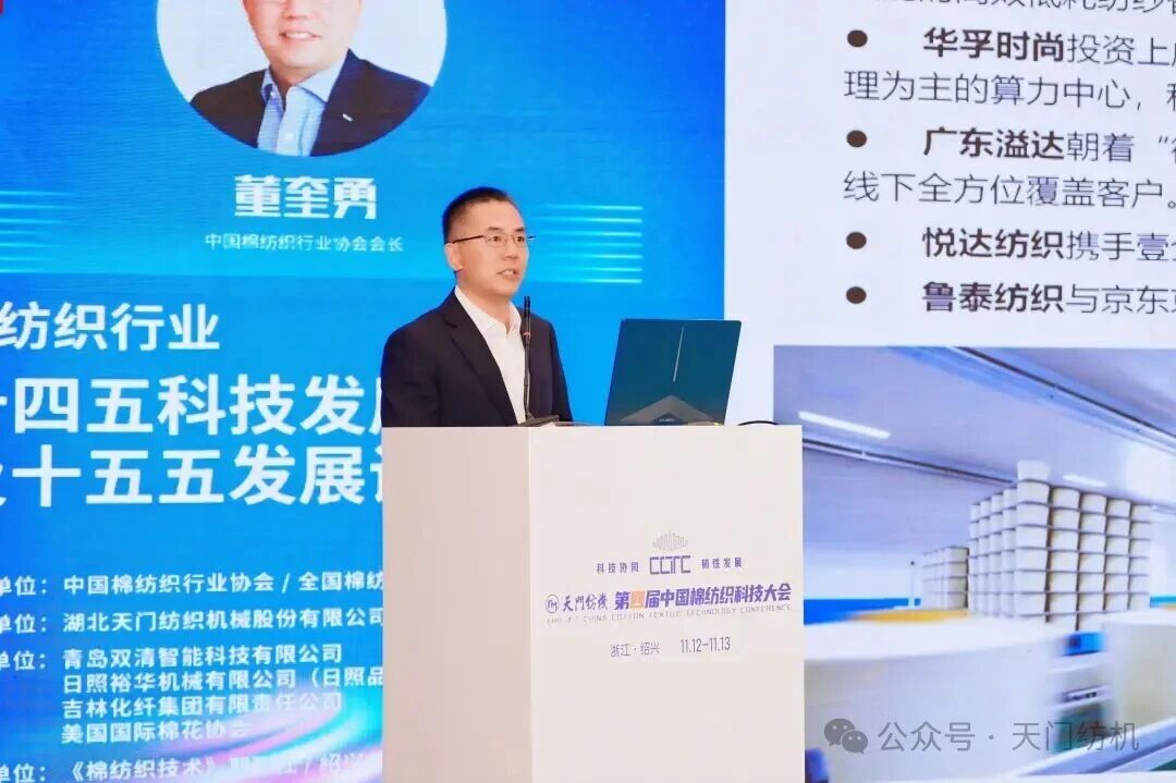 中國棉紡織行業(yè)協(xié)會會長董奎勇作了題為《棉紡織行業(yè)“十四五”科技發(fā)展成就及“十五五”發(fā)展設想》的主題報告,深入剖析了行業(yè)經濟運行現狀、發(fā)展環(huán)境變遷,以及當前科技創(chuàng)新所面臨的挑戰(zhàn)與機遇。