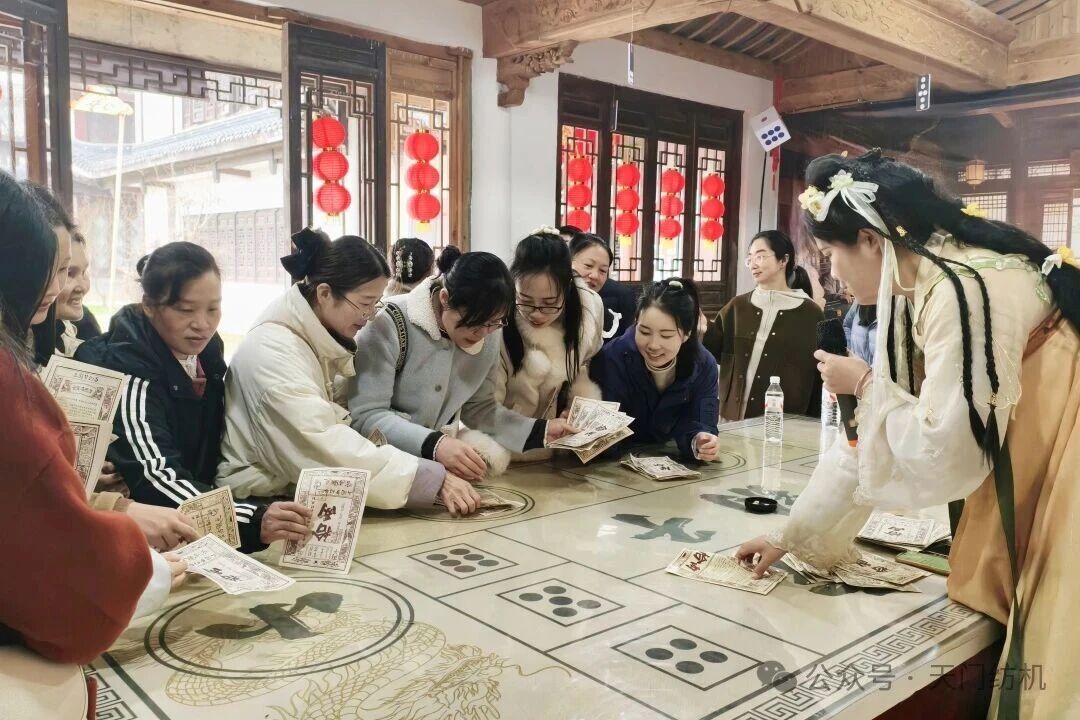 抵達(dá)天門三國夢幻谷后,大家按分組有序開啟游玩時(shí)光。該景區(qū)分為三國文化風(fēng)情區(qū)與動力游樂項(xiàng)目區(qū)兩大板塊,十多處古風(fēng)場景玩法各異,10余位專業(yè)NPC扮演三國角色現(xiàn)場互動打卡,女工們積極參與游戲,贏取“景區(qū)銀票”,用銀票體驗(yàn)射箭敲鑼、投壺、抽簽等趣味游戲,兌換精美禮品,歡聲笑語回蕩在景區(qū)的每一個(gè)角落。
